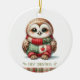 Adorno De Cerámica Patchwork Owl First Christmas Keepsake Photo