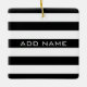 Adorno De Cerámica Patrón rayado negro y blanco con nombre