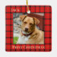 Ornamento clásico y elegante de estampado rojo "primera Navidad" que se puede usar para mascotas, bebés o recién casados. Añadir foto y personalizar el texto. Esto sería un gran regalo personalizado para la familia o amigos.