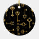 Patrón incomparable de llaves antiguas, doradas y de silueta sobre fondo negro.