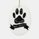 Impresión de la pata de perro con cinta negra. El mejor amigo del hombre. Imagen en blanco y negro.