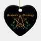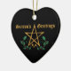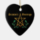 El "Saludo de la Temporada", adorno cerámico en forma de corazón, invita a un momento de reflexión, una pausa introspectiva en medio del frenético torrente de festividades. Al contemplar su meticuloso diseño, una mezcla de tradición y máscaras entrelazadas, evocando un profundo sentido de conexión con los antiguos ritmos de la temporada. Este adorno, con su llamativo tipo de letra negra inscrito sobre un negro profundo, acompañado de una estrella mística y adornado con hojas y bayas rojas, despierta una sensación de nostalgia agridulce —un anhelo por el pasado irrevocable y un reconocimiento de la fugaz belleza del presente. En los momentos tranquilos en los que el ornamento capta la luz, su esencia bruja y pagana susurra hasta las profundidades del alma, invocando un sentido de las energías místicas que impregnan las festividades. Se erige como testamento del poder duradero de la tradición, la paradoja de la naturaleza humana y la danza perenne entre la luz y la oscuridad. Para los que caminan por el sendero del Wicca y el paganismo, se convierte en algo más que una simple decoración; se transforma en un talismán del magick de la temporada, un símbolo que resonó en las fuerzas primarias que gobiernan nuestro mundo. Mientras colocas este adorno en forma de corazón en tu árbol, o lo ofreces como un regalo a otro, reflexiona sobre las capas de significado que encarna. Es una celebración de las dualidades de la temporada —alegría y tristeza, luz y sombra, lo mundano y lo místico. En su presencia, no se puede evitar reflexionar sobre el delicado equilibrio de las complejidades de la vida y la profunda belleza que surge de abrazarlas.