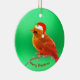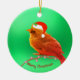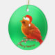 Hermoso adorno con Navidades de pájaro pequeño sobre fondo verde. ¡Ideal para los amantes de la naturaleza!