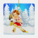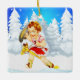 Pequeña vaquera occidental en el ornamento de cerámica de la escena del invierno del caballo de palillo