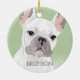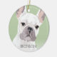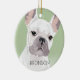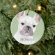 Adorno de Navidad de perro bulldog francés inspirado en el arte pop con un perro francés blanco sobre un fondo verde pastel que se puede cambiar a cualquier color, agregue el nombre de su mascota.