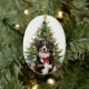 Adorno De Cerámica Perro de montaña bernés con lazo rojo de Navidad