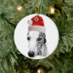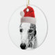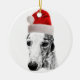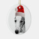 Perro adorable de Whippet que lleva un ornamento rojo del navidad del gorra de Santa. Estos ornamentos del perro de Whippet hacen los regalos maravillosos para los dueños de Whippet o los amantes del perro.