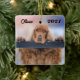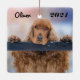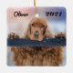 Ornamento de cerámica de perro castaño rojo esponjoso y personalizado