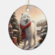 Adorno De Cerámica Perro samoyano en Navidades de nieve