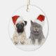 Adorno De Cerámica Perro y gato en gorra rojo del navidad