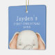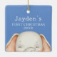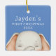 El primer adorno navideño de un niño bebé con un lindo ilustracion de un elefante y un fondo azul. Personalízalo con el nombre del niño y el año. Doble cara con el mismo diseño.