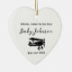 Celebra el viaje de tu pequeña con este adorno con forma de corazón dulce y personalizado. En la parte delantera aparece la frase de personalizable "Carga especial en el camino" junto con el nombre de su bebé, fecha de vencimiento. Debajo del nombre se encuentra una divertida imagen de un avión biplano, perfecto para la familia Piloto o Aviación. En la parte de atrás, suba una preciada foto del ultrasonido de tu bebé para convertirlo en un conservador único. Este adorno es la manera perfecta de anunciar su embarazo, marcar la fecha de nacimiento de un bebé o crear un recuerdo de vacaciones duradero para los padres y abuelos que esperan quedarse embarazadas. Muéstralo orgullosamente en tu árbol de Navidad, o dalo como un regalo reflexivo para celebrar este alegre hito. Invitación perfecta para el embarazo o ducha de bebé. Hecho para apreciar la llegada especial de su bebé durante los años venideros. Póngase en contacto con nosotros para obtener más personalizaciones antes de realizar su pedido. Gracias por visitar nuestra tienda. Derechos De Autor En Diseño De Estilo LLC.