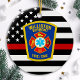 Ornamento delgado del Departamento de Bomberos de la Línea Roja - Bandera americana en colores de la bandera del bombero, diseño moderno negro y rojo . Personalizar con el logo de su departamento y el nombre del bombero. Este ornamento de bomberos personalizado es perfecto para departamentos de bomberos y servicio de bomberos, regalos de retiro o graduación, regalos de Navidades a sus bomberos. Solicite estos ornamentos de bomberos al por mayor para regalos de la academia de bomberos o del departamento de bomberos, navidades de bomberos abastecedores de peregrinos. DERECHOS RESERVADOS © 2020 Judy Burrows, Black Dog Art - Todos los derechos reservados. Logotipo del Personalizado del Departamento de Bomberos Emblem Bombero Ornamento cerámico