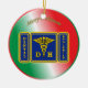 Este adorno navideño personalizado está decorado por un lado con el Escudo del Caduceus higienista dental. El reverso está decorado con una imagen de Santa Claus llevando su bolso de mercancía, y se puede personalizar con nombres, fechas, etc