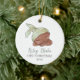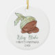 El primer ornamento de cerámica de Navidad de un bebé afroamericano con un adorable ilustracion de un bebé durmiendo. Personalizado con el nombre del bebé y el año. Diseño de doble cara. Es ideal para los recién nacidos.