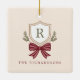 Adorno De Cerámica Personalizado Escudo Monograma Bow Navidades