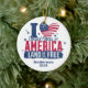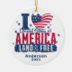 Personalizado I Love Estados Unidos de América Ornamento cerámico gran regalo para la familia patriótica o persona. Nombre y año son personalizables