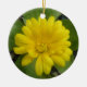 Este adorno de estilo bonito está decorado con una fotografía detallada de una caléndula amarilla brillante. La fotografía fue tomada con fotografía macro y muestra un impresionante contraste entre esta flor amarilla brillante y sus hojas verdes oscuras. Hay un texto amarillo personalizable en la parte posterior para que escriba su propio mensaje personal.