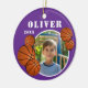 Personalizado Purple Basketball Ball Sports Photo Ceramic Ornament. Ornamento con balones de baloncesto, nombre personalizado y foto en un marco redondo.