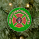 Este adorno navideño personalizado está decorado de un lado con el escudo de bomberos voluntarios. El reverso está decorado con una imagen de Santa Claus llevando su bolsa de mercancía, y se puede personalizar con nombres, fechas, etc.