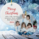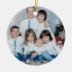 Personalizado elegante adorno anual de Navidad con copos de nieve, y una foto de todos los primos. Agregue el texto personalizado que desee en la parte delantera y posterior. En el ejemplo se muestra un mensaje rojo de Feliz Navidad o Felices Fiestas en la parte trasera junto con el año en curso y los nombres de cada niño. Todo el texto es editable.