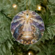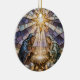 This beautiful ornament depicts the adoration of the Christ Child by Mary, Joseph, and the shepherds, all bathed in the radiant light of the Star of Bethlehem. The rich, jewel-toned colors and intricate "leaded glass" look make it a spectacular addition to any tree.