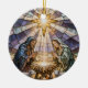Celebrate the true meaning of Christmas with this stunning keepsake ornament featuring a classic Nativity scene in a vibrant, stained-glass mosaic style.