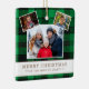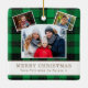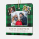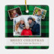 Adorno De Cerámica Personalized Family 3 Photo Green Plaid Christmas