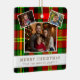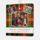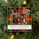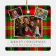 Adorno De Cerámica Personalized Family 3 Photo Green Plaid Christmas