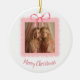 "Add a touch of elegance and warmth to your holiday décor with this beautiful Personalized Merry Christmas Ornament. This charming keepsake features your family photo centered on a soft pink background, creating a sweet and modern holiday look. Beneath the picture, a delicate pink bow adds a festive finishing touch, while “Merry Christmas” is elegantly displayed below — making it the perfect blend of personalization and holiday cheer. This ornament is a meaningful way to celebrate family moments and makes a thoughtful gift for loved ones. Whether you hang it on your tree, give it as a stocking stuffer, or use it as a memorable keepsake, it’s sure to be treasured for years to come."