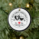 Celebrate the magic of your first Christmas as a married couple with this beautiful "Our First Christmas Mr. & Mrs." personalized ornament. Featuring an elegant black-and-white design with a tuxedo heart and a dress heart, a sweet "Together 2025" detail, and festive snowflake accents.