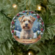 A beautiful, ultra-detailed Christmas design featuring a realistic portrait of the breed centered within a soft, festive winter frame. This elegant design includes pine branches, red berries, and snowflakes against a snowy backdrop, illuminated by warm holiday lighting. The balanced, round composition includes clear space below the dog for customization.