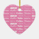 A pretty personalized heart shaped Christmas ornament gift gift for a little girl decorated in nine different fonts spelling your name in white. Cute customizable present with fun typography.