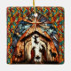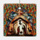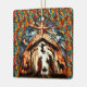 Celebrate the true meaning of Christmas with this exquisite Personalized Stained Glass Nativity Ornament. This beautiful square ceramic ornament features a vivid, intricate design reminiscent of a stained glass window, depicting the Holy Family under the guiding light of the Star of Bethlehem.