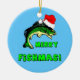 ¡Feliz Fishmas! Los pescados de salto divertidos e hilarantes con el gorra de santa deseándole Felices Navidad la única manera él sabe. Ornamentos chistosos de los regalos del navidad de la pesca para adornar el árbol de navidad del día de fiesta para el pescador.