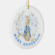 Cherish the Anticipation with a Peter Rabbit Baby Announcement Ornament. Celebrate the arrival of a new baby with our Personalized Peter Rabbit Baby Announcement Ornament. Inspired by Beatrix Potter's classic character, this charming keepsake embodies family joy and excitement. Ideal for a Christmas pregnancy reveal or as a thoughtful gift for expectant parents, it adds whimsy and charm to any tree.