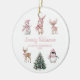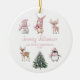 This sweet Christmas ornament features a watercolor collection of pink woodland animals including a bunny, deer, penguin, and snowman gathered around a festive Christmas tree. Personalized with your baby’s name and the year, this keepsake captures the magic of her first Christmas. The back can be customized with a favorite photo, making it a heartfelt gift for new parents, grandparents, or loved ones to treasure year after year.