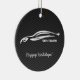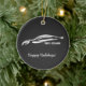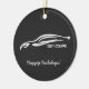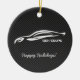 Pincelada blanca del cupé de la génesis de Hyundai con el ornamento personalizado de Navidad de los saludos. Falso fondo de la fibra de carbono.