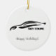 Pincelada del negro del cupé de la génesis de Hyundai con el ornamento personalizado de Navidad de los saludos.