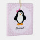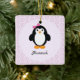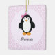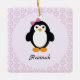Personalice este pingüino de bonito con un fondo floral rosado adornado con un nombre o texto de su elección.