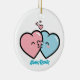 Adorno De Cerámica Pink & Blue Hearts Kiss