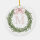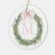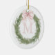 Adorno De Cerámica Pink Bow Monogram Wreath Christmas