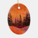 Adorno De Cerámica Pinos en una colina con un suave atardecer rojo