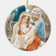 Pinté esta imagen de la Natividad de los Navidades con la Estrella de los Navidades visible en el fondo, bañando a María, José y el niño Jesús en su luz. Pequeños burros miran la escena desde el interior del granero.