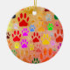Patrón de huellas de perros de dibujos animados en muchos colores. Adornos de cerámica personalizado con diseño de estilo vintage. Idea de regalo para los amantes del perro.