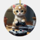 Adorno De Cerámica "Pixel Paws: The Gamer Kitten in Action"