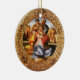 El Doni Tondo o Doni Madonna, arte fino renacentista, obra maestra del maestro renacentista italiano Michelangelo Buonarroti en su marco original. El marco está ornamentado y es bastante inusual para las cinco cabezas que contiene que sobresalen tres dimensiones en el espacio.Situado en los Uffizi de Florencia, Italia, en brillantes colores amarillo, blanco, azul, rojo, verde, marrón. d piedra de esmeralda verde.