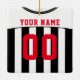 Fácil de editar el ornamento de vacaciones de fútbol / fútbol / camiseta deportiva, simplemente utilice las cajas a la derecha de la imagen para insertar su propia elección de nombre y número. Este diseño jersey tiene rayas verticales negras. El color de fondo puede cambiarse, sólo tienes que hacer clic en "PERSONALIZAR". Si desea un diseño personalizado hecho en un esquema de color específico, póngase en contacto conmigo utilizando el vínculo "Contáctese con este diseñador" que aparece a continuación. Perfecto para cualquier festividad, ya sean Navidades, cumpleaños, Hanukkah o cualquier celebración! Excelentes ideas de regalo para el fanático o jugador deportivo en tu vida.