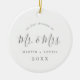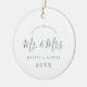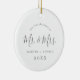 Este mínimo adorno de cerámica de boda de Navidad recién casados en plata es la decoración perfecta y sencilla de un árbol de Navidad. El diseño presenta una tipografía clásica en blanco y negro, acompañada de un tipo de letra rústico-elegante con letras a mano. Este adorno de sake dice "nuestra primera Navidad como mr y mrs". Personalice el frente con sus nombres y el año. Personalice la parte posterior con su foto favorita del boda.