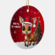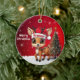 Prancer! Celebrate the holiday season with this festive round ceramic red ornament featuring an endearing woodland forest animal cartoon graphic of a cute baby reindeer wearing a Santa hat, and Merry Christmas written in white. Perfect deer with antlers for decorating your tree or as a thoughtful gift, this whimsical doe decor makes a cherished keepsake for years to come. Customize by changing the text, the font, the font color, or remove the text. You can even transfer this design onto other products. Enjoy this design your way! Check out ForestBabies Xmas Deer Collection for matching decorations. 🎄🦌